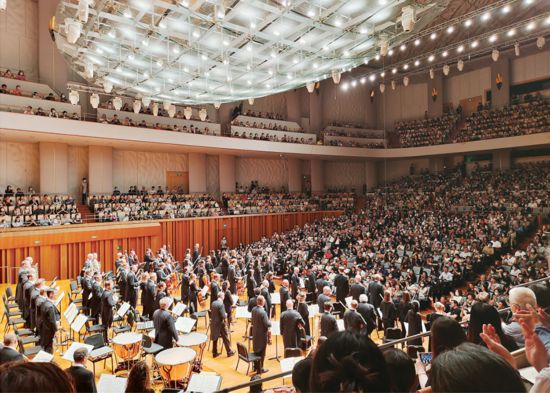 中国与奥地利以音乐为纽带,拉近了距离,沟通了心声,加深了友谊。图为2023年5月31日,维也纳交响乐团在国家大剧院演出后,全场观众鼓掌欢呼。 新华社发 程正发/摄